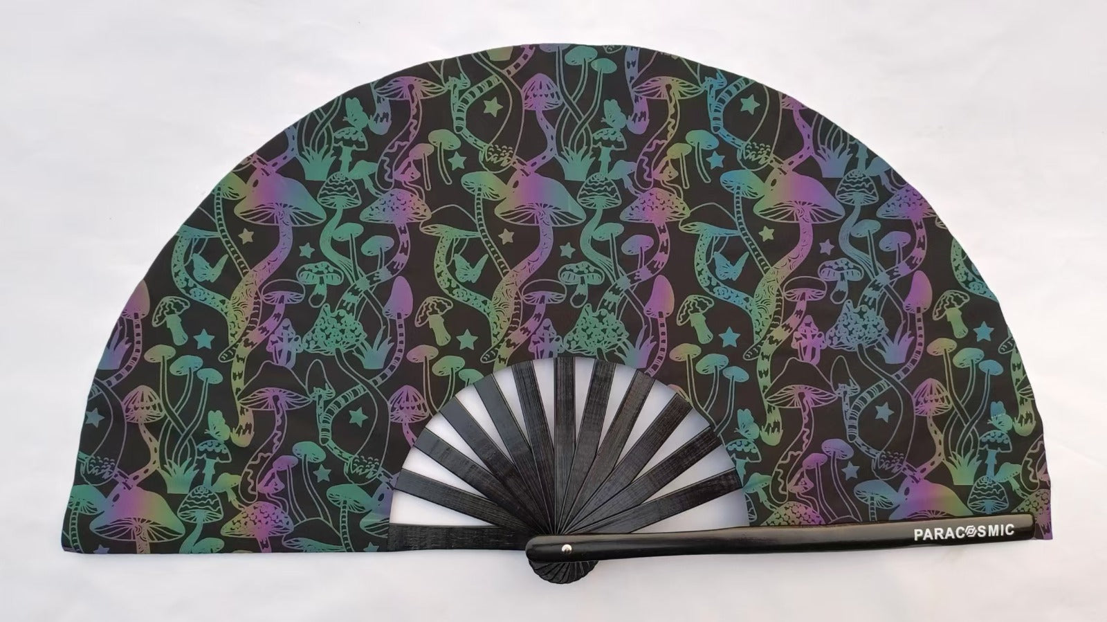 PARACOSMIC Reflective Foldable Hand Fan - Mushroom Forest