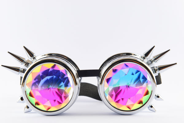 The best light-show is with our PARACOSMIC real crystal lens goggles, experience a sea of colours & patterns. With our Kaleidoscope Cyber Goggles, you'll get the ultimate light show. The real crystal lens creates a sea of colors and patterns that will mesmerize you. The chrome frame is stylish and strong, with spikes to give it an extra edge. And the bold PARACOSMIC logo on the strap makes sure everyone knows where the party is at. These goggles have been drop ball tested, so you know they're tough enough for any situation.