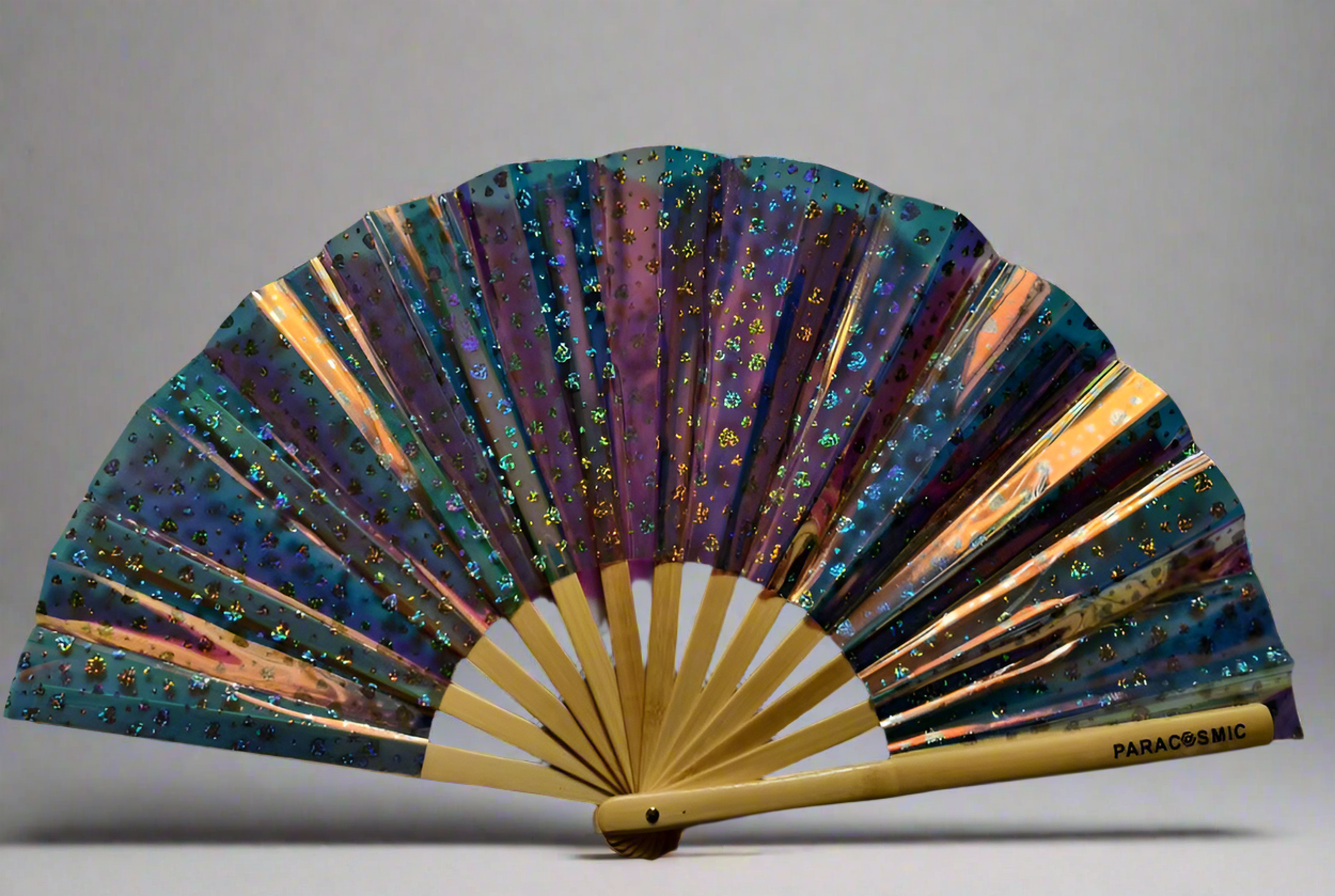 The size is truly impressive, at 33cm length, you will really stand out from the crowd. Plus its weight won't burden you down! If you want something daring and different to wear on special occasions or simply stylishly stay cool during these hot summer days, this folding hand fan is what you need! Stop worrying about heatwaves and start embracing an iridescent fashion statement like no other. Grab your PARACOSMIC PVC Foldable Hand Fan today and let all eyes be on you – whoever said staying cool isn't stylish?!