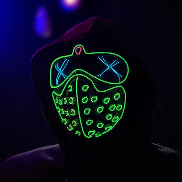 Light up the night with the Electra LED El Mask! This glowing mask adds an electrifying touch to any outfit, making you the life of the party. With colorful LED lights and a playful design, you'll stand out in the crowd and bring a spark to any event. (Electrify your look with Electra!)