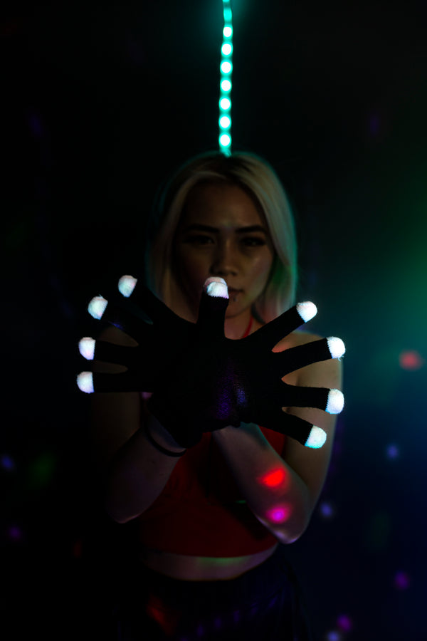 Step up your light show game with these LED gloves! They come in three colors, each with six flashing modes to choose from. Plus, they're one size fits all and include two CR2032 batteries so you can start flashing right away. Whether you're at a music festival, bush doof or rave, these gloves will add some extra flare to your outfit. So grab yourself a pair today and get ready to light up the night!